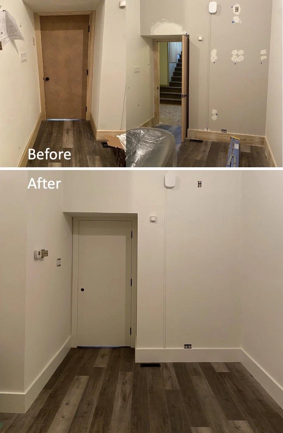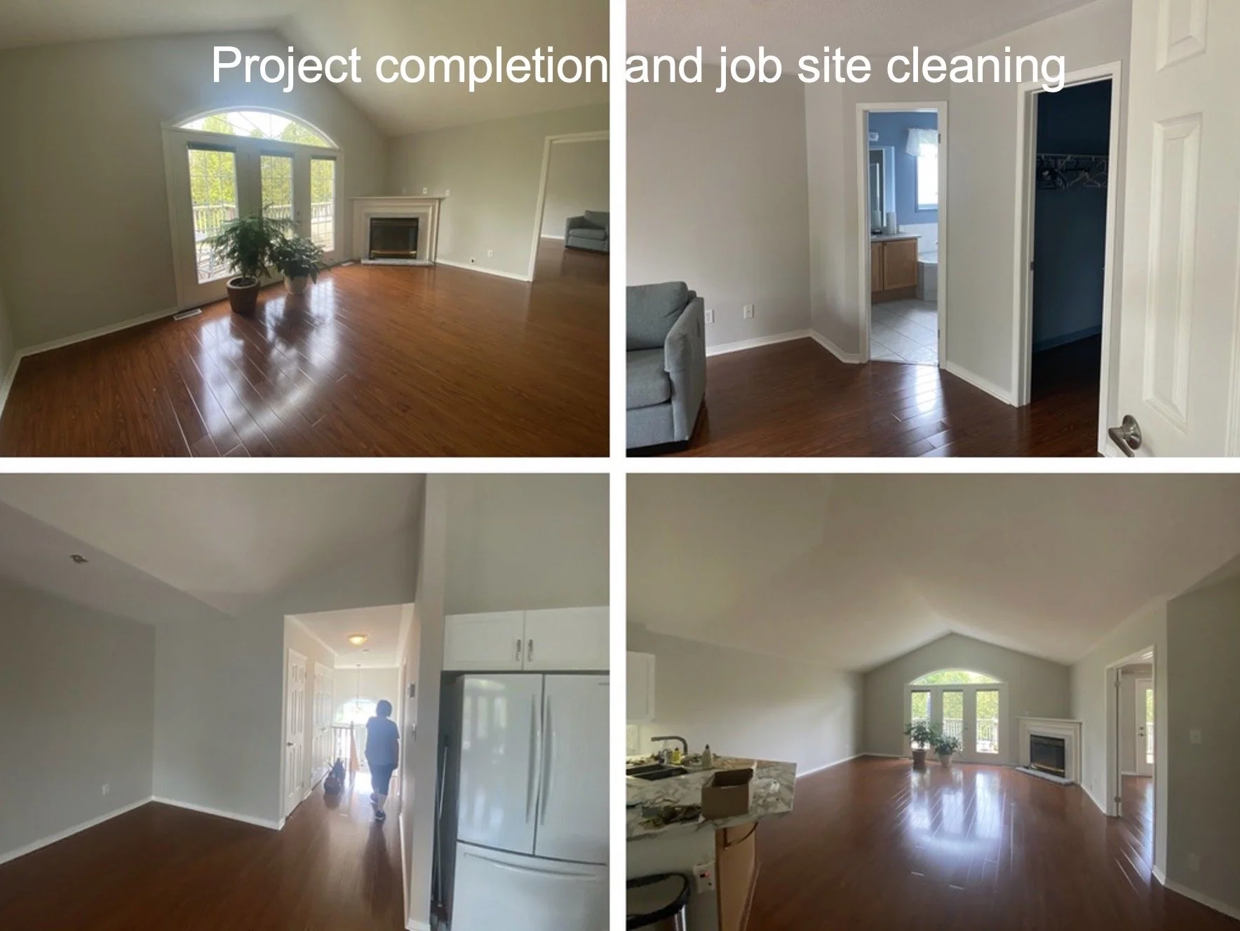 We are experienced and mindful of working in spaces where our client is living or working. We keep dust and mess to a minimum, cover furniture in new plastic and flooring in clean drop sheets. Our team cleans up their work area at the end of each day to minimize any interruption to your family/work environment.